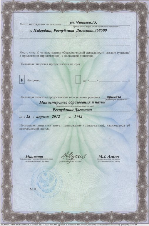 | Адрес местонахождения образовательной организации* | 368501г.Избербаш ул.Чапаева 15 |